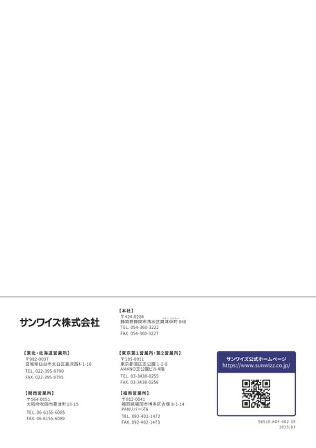 424-0204TEL.054-360-3222FAX.054-360-3227https://www.sunwizz.co.jp/90510-AOF-002-392025/03